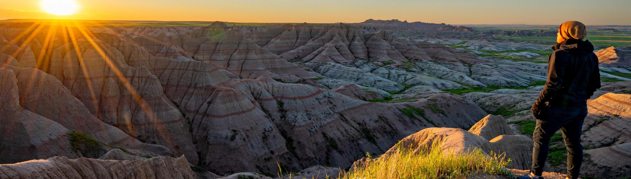 Een dagtrip in Theodore Roosevelt National Park, waarbij u de scenic loop rijdt en stopt bij uitzichtpunten. U maakt korte wandelingen langs paden die u de prairie, badlands en wildlife laten zien. Het park biedt een afwisselend landschap van vlaktes, heuvels en ravijnen.