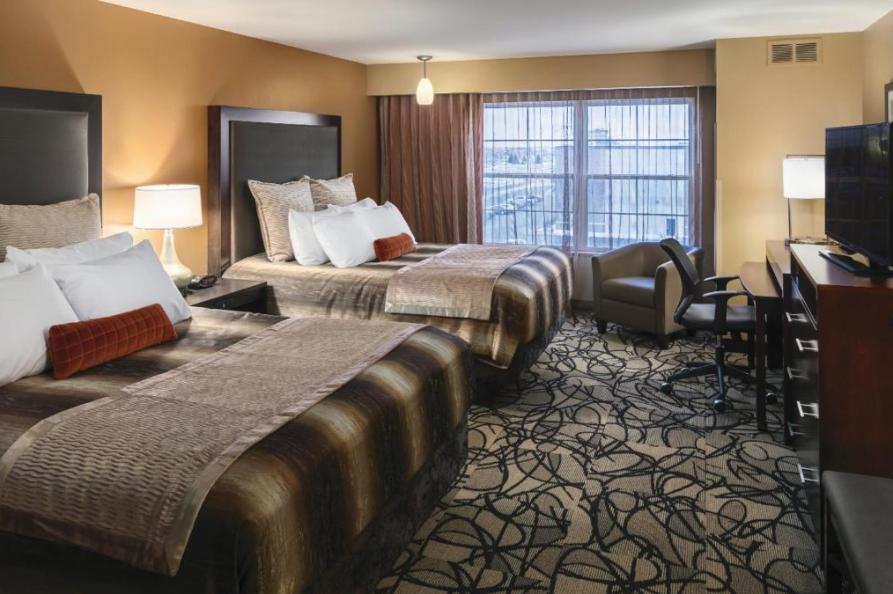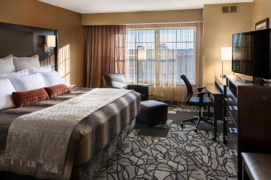 Omringd door de dynamische sfeer van het centrum van Fargo, vindt u een keur aan eetgelegenheden, boetieks en culturele bezienswaardigheden op loopafstand. Verken de historische Fargo Theatre, ontdek de lokale kunstgalerijen of geniet van een avondwandeling door de pittoreske straten, allemaal op korte afstand van uw accommodatie. Ontspan in een van de 100 gastenkamers en suites, elk met een verfijnde eigentijdse uitstraling en rijke texturen in zwart, brons, bruin en crème. De rode accenten in tapijten, beddengoed en wanddecoraties accentueren het luxe hardhouten en lederen meubilair.